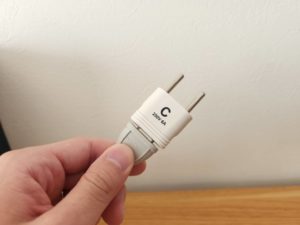注意点として、変換プラグあるあるなんですが、ちょっとコンセントが抜けやすいです。