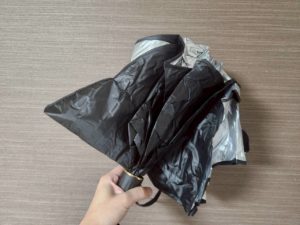 ちょっと値が張ってもコンパクトになる傘型のほうがいいかなという感じです!