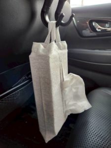 自分たちは、常にティッシュを引っかけているのと、旅行の時はゴミ袋とかよく使うものをつるしています。