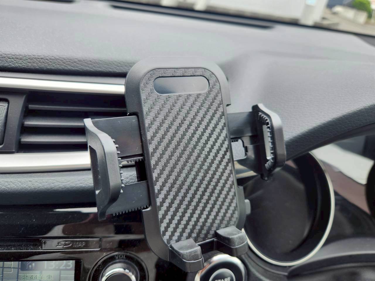 個人的には100均でもいいんですが、100均のものはエアコンの隙間に差し込むので、差し込んでいる部分のエアコンは使えなくなります。(方向の調整ができないし、そもそも携帯に風があたっって運転席までこないです。)