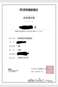 ●資格:世界遺産検定2級取得(2025年7月10日)