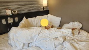自分たちはビジネスホテルのベッド、そしてベビーベッドを借りない状態でした。