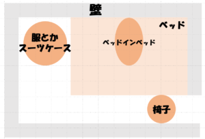 柔らかい素材の物をベッド周囲に置いておくことで、万が一落ちた時もクッションなると思って、衣類などを置いておきました。
