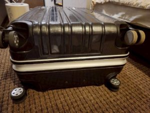 写真は取ってなかったんですが、自分が以前使っていたキャリーバックはキャスターが壊れてしまって持ち運ぶのが非常に大変でした…。