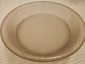 ふざけて洗面器に水を入れて残りの粉を入れてみました。