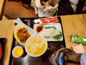 函館ダイニング雅家では、【函館空港限定の海鮮定食】と【イカ刺】、【タコ唐】を食べました(^^♪