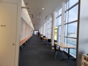 搭乗受付周辺の窓側にはそのまま座ることができます。自分は受付周辺で休むことはあまりしませんが、どうしても場所がない人は検討してもよさそうです。