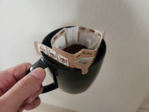 スタバのマグカップって大きいので、市販のドリップコーヒーだと手で押さえながらいれないと、重みに耐えられなくて中に入っちゃうんです。笑